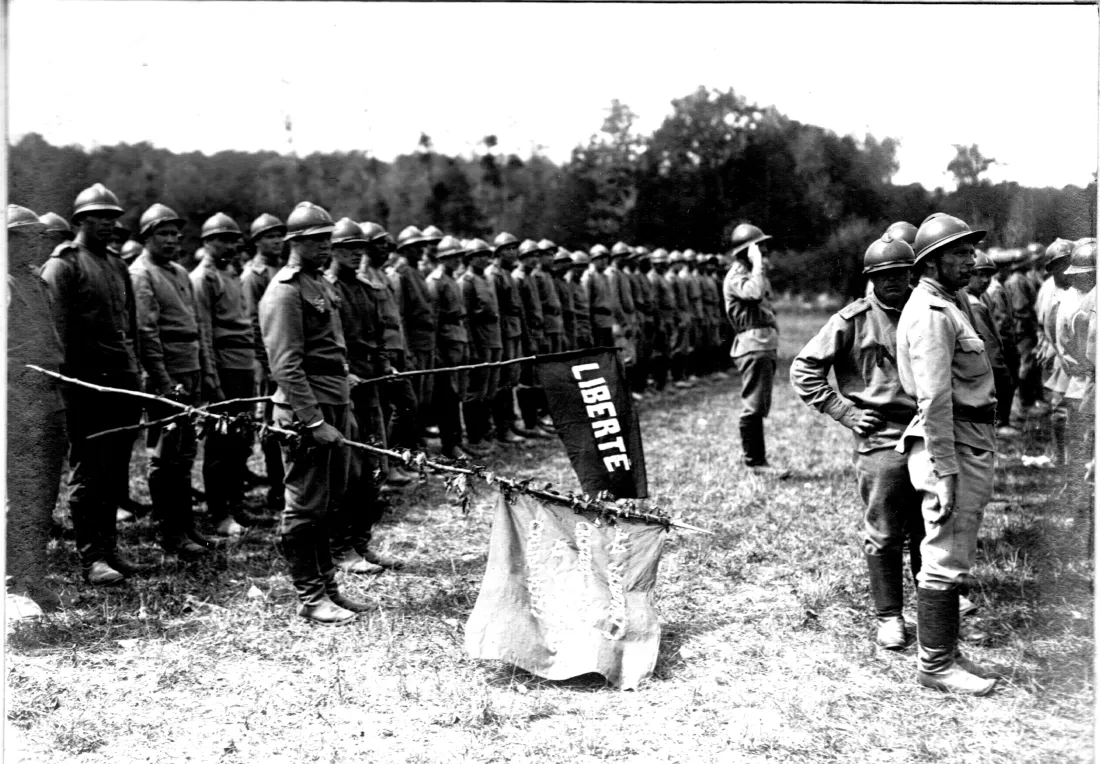 Le principe de l’envoi de soldats russes sur le front de France est acquis lors de la mission de Paul Doumer en Russie, à l’automne 1915. Ces troupes de l’allié russe étaient destinées à combler les vides laissés au front après les saignées des combats de 1914 et 1915. Le gouvernement français promet en échange des fusils pour l’armée russe. Sur quatre brigades mises sur pied, deux d’entre elles, les 1ère et 3ème, partent pour la France. La 1ère débarque à Marseille en avril 1916 via la Sibérie et la voie maritime de Vladivostok. Elle est affectée sur le front dès l’été 1916 près d’Auberive, à l’est de Reims. Les troupes russes y subirent immédiatement des pertes importantes avant d’être lancées dans la grande offensive Nivelle d’avril 1917, au cœur du dispositif d’attaque. Les événements de mars 1917 en Russie sont d’abord bien accueillis par les soldats russes en France. Le gouvernement provisoire, en nommant de nouveaux représentants, donne des consignes de démocratisation de l’armée. Des soviets apparaissent au sein de la 1ère brigade dans le 1er régiment. Les bouleversements de la première révolution russe, l’échec sanglant de l’offensive d’avril puis la crise des mutineries dans l’armée française, soutiennent l’expression du mécontentement. Le 1er mai 1917, des manifestations éclatent où les drapeaux rouges sont levés. Les ordres des officiers russes ne sont plus respectés.